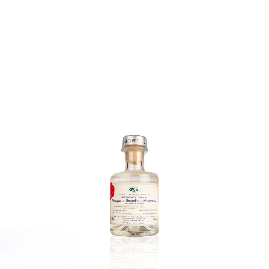 Toskanischer Grappa aus einer einzigen Rebsorte, gewonnen durch kontinuierliche Destillation von Trestern, die aus der Pressung der Trauben stammen, die für die Herstellung des Brunello di Montalcino verwendet werden.